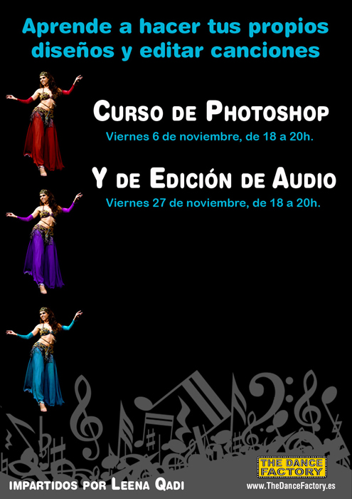 DOS CURSOS INDISPENSABLES PARA ARTISTAS Y PROFESORES QUE DESEAN MEJORAR SU IMAGEN O EDITAR CANCIONES. El Curso será impartido por Leena Qadi (Elena Juez), directora de AprendeDanzaOriental.com CURSO DE PHOTOSHOP: Mejorar tu …