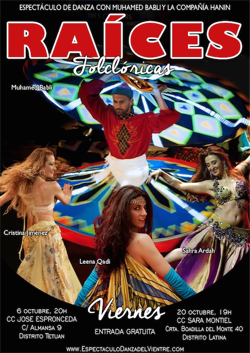 Este espectáculo es un recorrido por los diferentes pueblos árabes a través de su música y danza, rico en matices y colores. Las danzas árabes han traspasado fronteras y se admiran en países de Europa, Asia y América. Las danzas folklóricas árabes son la base de la tan conocida ahora “danza del vientre”. En este espectáculo podrás disfrutar de danzas muy diferentes entre sí: Danza mística sufí y danza derviche con el Mohamed Babli. Danzas folclóricas y danza del vientre de Egipto con las bailarinas Leena Qadi (dirección), Sahra Ardah y Cristina Jiménez.