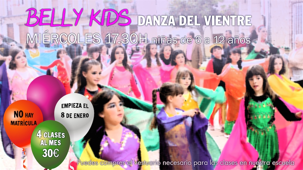 ¡Buenas noticias para las pequeñas bailarinas! A partir de enero tendremos dos grupos de danza del vientre, BELLY KIDS para niñas de 6 a 12 años y BELLY TEEN para niñas de 13 a 17 años. ¡Divertidísimo y didáctico!
