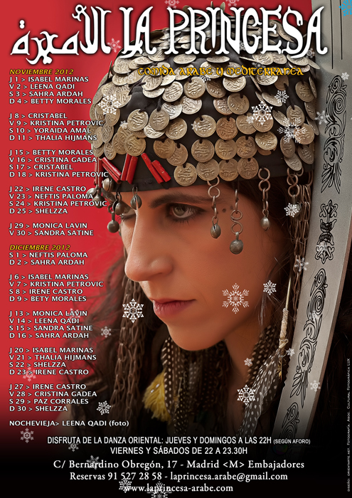 Si deseas realizar una reserva para cualquiera de los días, puedes hacerlo en el teléfono 91 527 28 58o a través del email laprincesa.arabe@gmail.com.