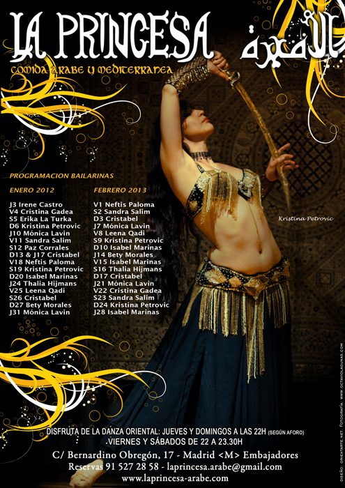 ¡LA PRINCESA ÁRABE LES DESEA UN FELIZ Y PROSPERO 2013! PROGRAMACION BAILARINAS ENERO 2012 J3 Irene Castro V4 Cristina Gadea S5 La Turka D6 Kristina Petrovic J10 Mónica Lavin V11 …
